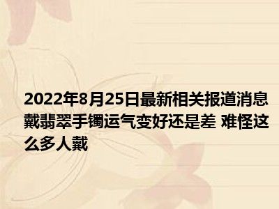 - 2022-08-25当日最新消息 戴翡翠手镯运气变好还是差 难怪这么多人戴