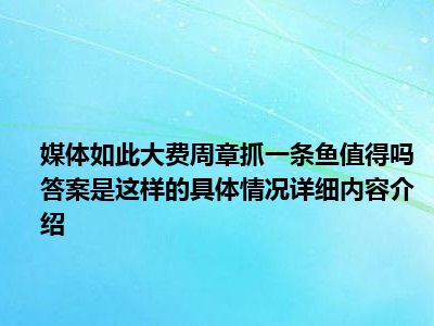 - 媒体如此大费周章抓一条鱼值得吗 答案是这样的具体情况详细内容介绍