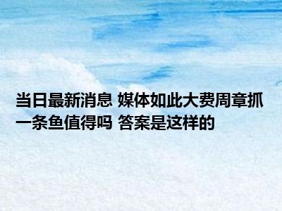媒体:如此大费周章抓一条鱼值得吗 答案是这样的现在是大家比较关注的,因为目前媒体:如此大费周章抓一条鱼值得吗 答案是这样的的热度是相对比较高的,那么既然大家对此都比较感兴趣,小S也是特地到网上去查找了一些相关的信息,下面就由小S来把这些信息来分享给大家一起查阅吧。