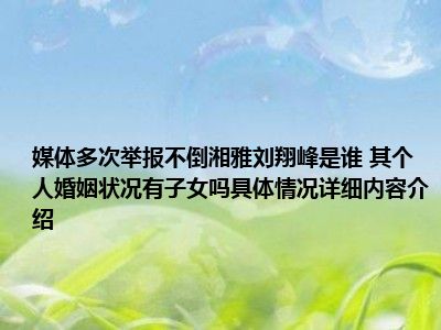 想必大家现在对于媒体:多次举报不倒湘雅刘翔峰是谁 其个人婚姻状况有子女吗方面的消息都是比较想了解的吧,那么针对于媒体:多次举报不倒湘雅刘翔峰是谁 其个人婚姻状况有子女吗方面的消息,小西自然是收集了一些相关方面的消息,那么如果您感兴趣的话,可以看下下面小西为大家收集到与媒体:多次举报不倒湘雅刘翔峰是谁 其个人婚姻状况有子女吗相关的消息吧。
