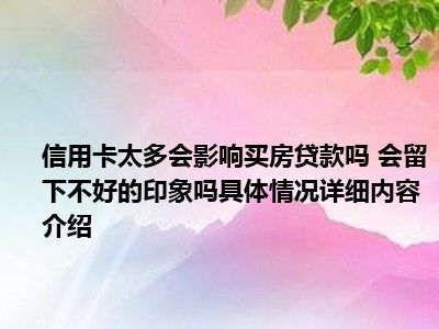 想必大家现在对于信用卡太多会影响买房贷款吗 会留下不好的印象吗方面的消息都是比较想了解的吧,那么针对于信用卡太多会影响买房贷款吗 会留下不好的印象吗方面的消息,小西自然是收集了一些相关方面的消息,那么如果您感兴趣的话,可以看下下面小西为大家收集到与信用卡太多会影响买房贷款吗 会留下不好的印象吗相关的消息吧。