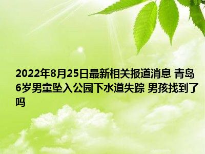 - 2022-08-25今日最新更新内容 青岛6岁男童坠入公园下水道失踪 男孩找到了吗