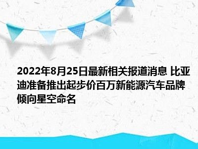 - 2022-08-25当日最新消息 比亚迪准备推出起步价百万新能源汽车品牌 倾向星空命名