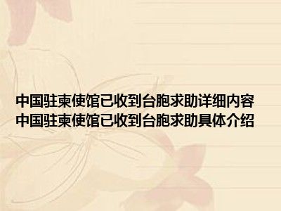 导读大家好,小太来为大家解答以上问题。中国驻柬使馆已收到台胞求助很多人还不知道,现在让我们一起来看看吧!1、想必大家现在对于中国驻柬使...