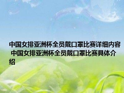 1、想必大家现在对于中国女排亚洲杯全员戴口罩比赛方面的信息都是比较想了解的吧,那么针对于中国女排亚洲杯全员戴口罩比赛方面的信息,小西自然是收集了一些相关方面的信息,那么如果您感兴趣的话,可以看下下面小西为大家收集到与中国女排亚洲杯全员戴口罩比赛相关的信息吧。