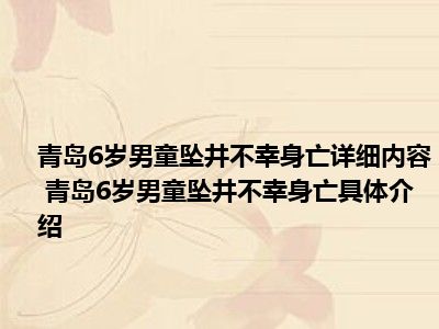 - 青岛6岁男童坠井不幸身亡详细内容 青岛6岁男童坠井不幸身亡具体介绍