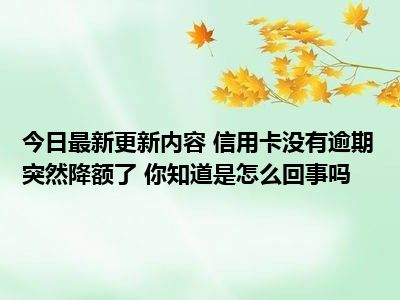 目前信用卡没有逾期突然降额了 你知道是怎么回事吗的关注度特别高,热度非常高,这也证明大家现在都在关注这个事情,那么具体的信用卡没有逾期突然降额了 你知道是怎么回事吗的事情是怎么回事呢,小编收集了一些相关的内容来给大家一起查阅一下把。