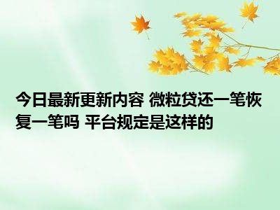 目前微粒贷还一笔恢复一笔吗 平台规定是这样的的关注度特别高,热度非常高,这也证明大家现在都在关注这个事情,那么具体的微粒贷还一笔恢复一笔吗 平台规定是这样的的事情是怎么回事呢,小编收集了一些相关的内容来给大家一起查阅一下把。