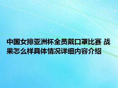 - 中国女排亚洲杯全员戴口罩比赛详细内容 中国女排亚洲杯全员戴口罩比赛具体介绍