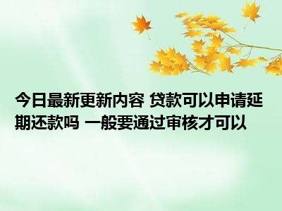 目前贷款可以申请延期还款吗 一般要通过审核才可以的关注度特别高,热度非常高,这也证明大家现在都在关注这个事情,那么具体的贷款可以申请延期还款吗 一般要通过审核才可以的事情是怎么回事呢,小编收集了一些相关的内容来给大家一起查阅一下把。