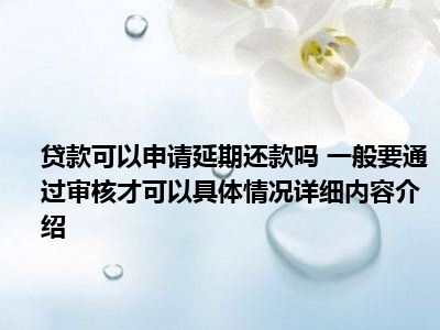 导读 想必大家现在对于贷款可以申请延期还款吗 一般要通过审核才可以方面的消息都是比较想了解的吧,那么针对于贷款可以申请延期还款吗 一般...