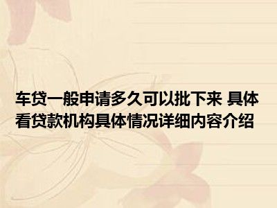 导读 想必大家现在对于车贷一般申请多久可以批下来 具体看贷款机构方面的消息都是比较想了解的吧,那么针对于车贷一般申请多久可以批下来 具...