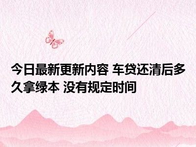 导读 目前车贷还清后多久拿绿本 没有规定时间的关注度特别高,热度非常高,这也证明大家现在都在关注这个事情,那么具体的车贷还清后多久拿绿...