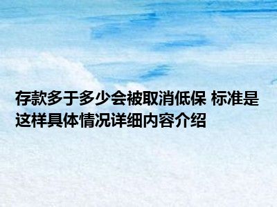 按照相关规定来看,存款超过当地最低保障的50%会被取消低保。领取低保是根据公民家庭总体收入在当地经济条件下是否符合基本生活保障等情况来判断的,具体存款多少取消低保,目前并没有统一的标准。
