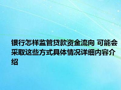 想必大家现在对于银行怎样监管贷款资金流向 可能会采取这些方式方面的消息都是比较想了解的吧,那么针对于银行怎样监管贷款资金流向 可能会采取这些方式方面的消息,小西自然是收集了一些相关方面的消息,那么如果您感兴趣的话,可以看下下面小西为大家收集到与银行怎样监管贷款资金流向 可能会采取这些方式相关的消息吧。