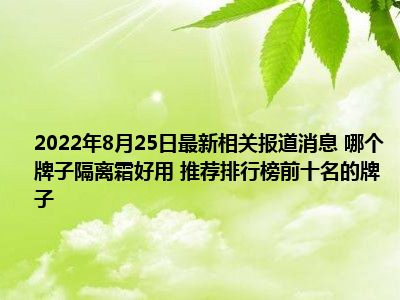 - 2022-08-25当日最新消息 哪个牌子隔离霜好用 推荐排行榜前十名的牌子