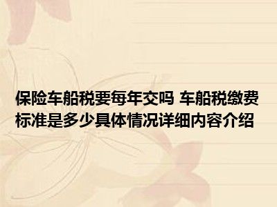 想必大家现在对于保险车船税要每年交吗 车船税缴费标准是多少方面的消息都是比较想了解的吧,那么针对于保险车船税要每年交吗 车船税缴费标准是多少方面的消息,小西自然是收集了一些相关方面的消息,那么如果您感兴趣的话,可以看下下面小西为大家收集到与保险车船税要每年交吗 车船税缴费标准是多少相关的消息吧。