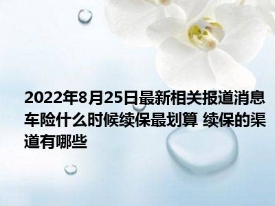 导读 今天大家应该都在关注车险什么时候续保最划算 续保的渠道有哪些这件事,那么很多小伙伴在关注的同时自然是想要了解到车险什么时候续保最...