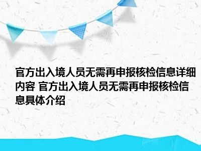 - 官方出入境人员无需再申报核检信息详细内容 官方出入境人员无需再申报核检信息具体介绍