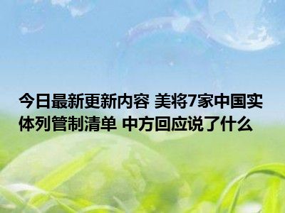 - 今日最新更新内容 美将7家中国实体列管制清单 中方回应说了什么