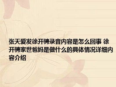 - 今日最新更新内容 张天爱发徐开骋录音内容是怎么回事 徐开骋家世爸妈是做什么的