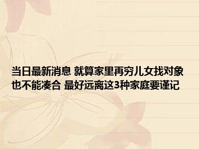 - 就算家里再穷儿女找对象也不能凑合 最好远离这3种家庭要谨记具体情况详细内容介绍