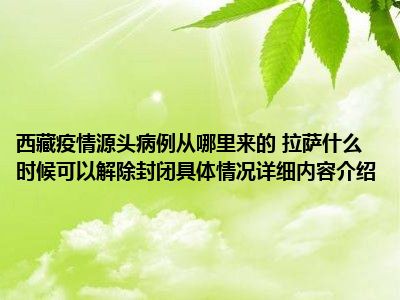 导读 想必大家现在对于西藏疫情源头病例从哪里来的 拉萨什么时候可以解除封闭方面的消息都是比较想了解的吧,那么针对于西藏疫情源头病例从哪...