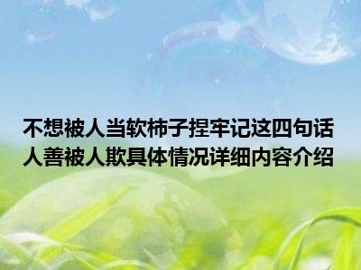 - 不想被人当软柿子捏牢记这四句话人善被人欺具体情况详细内容介绍