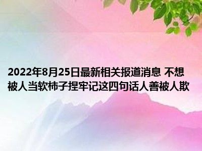 - 2022-08-25今日最新更新内容 不想被人当软柿子捏牢记这四句话人善被人欺