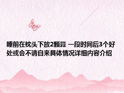 - 睡前在枕头下放2颗蒜 一段时间后3个好处或会不请自来具体情况详细内容介绍