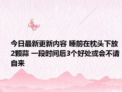 导读 目前睡前在枕头下放2颗蒜 一段时间后3个好处或会“不请自来”的关注度特别高,热度非常高,这也证明大家现在都在关注这个事情,那么具体...