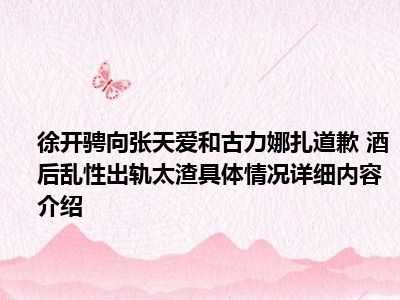 - 徐开骋向张天爱和古力娜扎道歉 酒后乱性出轨太渣具体情况详细内容介绍