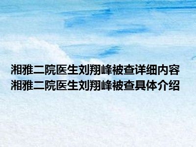 1、想必大家现在对于湘雅二院医生刘翔峰被查方面的信息都是比较想了解的吧,那么针对于湘雅二院医生刘翔峰被查方面的信息,小西自然是收集了一些相关方面的信息,那么如果您感兴趣的话,可以看下下面小西为大家收集到与湘雅二院医生刘翔峰被查相关的信息吧。