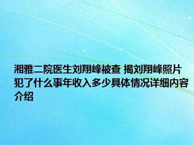 - 湘雅二院医生刘翔峰被查 揭刘翔峰照片犯了什么事年收入多少具体情况详细内容介绍