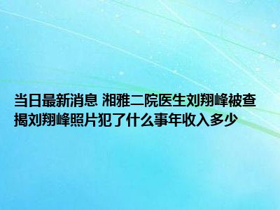 湘雅二院医生刘翔峰被查 揭刘翔峰照片犯了什么事年收入多少现在是大家比较关注的,因为目前湘雅二院医生刘翔峰被查 揭刘翔峰照片犯了什么事年收入多少的热度是相对比较高的,那么既然大家对此都比较感兴趣,小S也是特地到网上去查找了一些相关的信息,下面就由小S来把这些信息来分享给大家一起查阅吧。