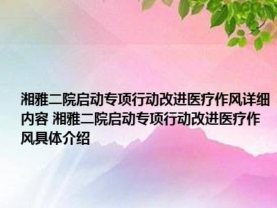 - 湘雅二院启动专项行动改进医疗作风详细内容 湘雅二院启动专项行动改进医疗作风具体介绍