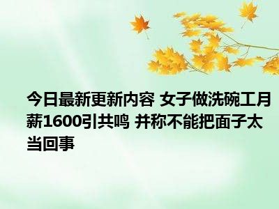 - 今日最新更新内容 女子做洗碗工月薪1600引共鸣 并称不能把面子太当回事
