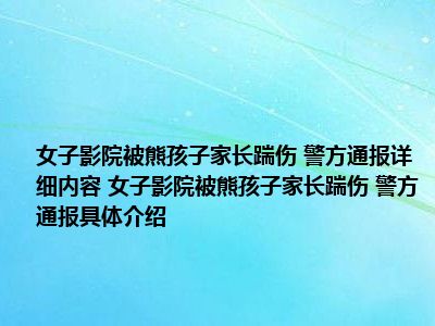 1、想必大家现在对于女子影院被熊孩子家长踹伤 警方通报方面的信息都是比较想了解的吧,那么针对于女子影院被熊孩子家长踹伤 警方通报方面的信息,小西自然是收集了一些相关方面的信息,那么如果您感兴趣的话,可以看下下面小西为大家收集到与女子影院被熊孩子家长踹伤 警方通报相关的信息吧。