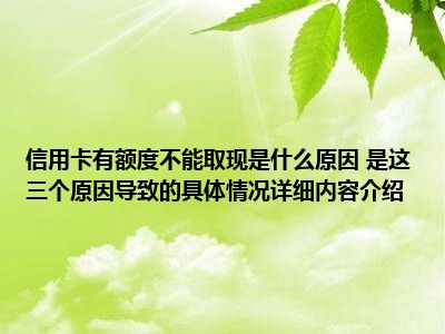 导读 想必大家现在对于信用卡有额度不能取现是什么原因 是这三个原因导致的方面的消息都是比较想了解的吧,那么针对于信用卡有额度不能取现是...