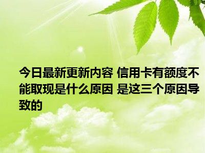 目前信用卡有额度不能取现是什么原因 是这三个原因导致的的关注度特别高,热度非常高,这也证明大家现在都在关注这个事情,那么具体的信用卡有额度不能取现是什么原因 是这三个原因导致的的事情是怎么回事呢,小编收集了一些相关的内容来给大家一起查阅一下把。