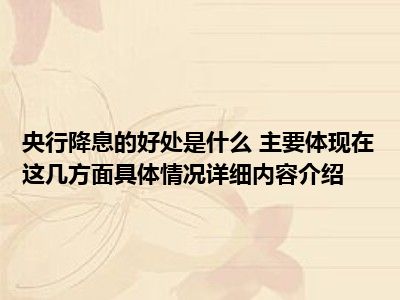 央行降息影响到方方面面,所以关注的人是非常多的,央行降息属于宏观调控,此举有好处也有坏处,那么央行降息的好处是什么呢,下面给大家分析解答。