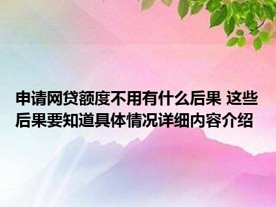 想必大家现在对于申请网贷额度不用有什么后果 这些后果要知道方面的消息都是比较想了解的吧,那么针对于申请网贷额度不用有什么后果 这些后果要知道方面的消息,小西自然是收集了一些相关方面的消息,那么如果您感兴趣的话,可以看下下面小西为大家收集到与申请网贷额度不用有什么后果 这些后果要知道相关的消息吧。