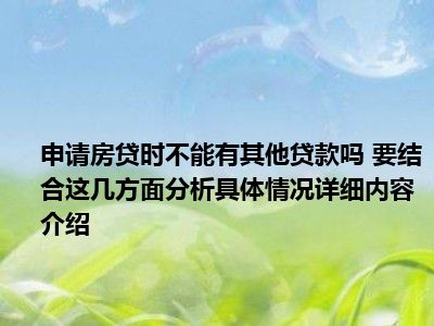 想必大家现在对于申请房贷时不能有其他贷款吗 要结合这几方面分析方面的消息都是比较想了解的吧,那么针对于申请房贷时不能有其他贷款吗 要结合这几方面分析方面的消息,小西自然是收集了一些相关方面的消息,那么如果您感兴趣的话,可以看下下面小西为大家收集到与申请房贷时不能有其他贷款吗 要结合这几方面分析相关的消息吧。