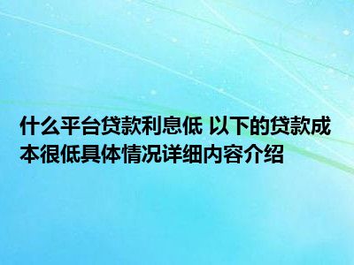 想必大家现在对于什么平台贷款利息低 以下的贷款成本很低方面的消息都是比较想了解的吧,那么针对于什么平台贷款利息低 以下的贷款成本很低方面的消息,小西自然是收集了一些相关方面的消息,那么如果您感兴趣的话,可以看下下面小西为大家收集到与什么平台贷款利息低 以下的贷款成本很低相关的消息吧。