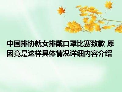 想必大家现在对于中国排协就女排戴口罩比赛致歉 原因竟是这样方面的消息都是比较想了解的吧,那么针对于中国排协就女排戴口罩比赛致歉 原因竟是这样方面的消息,小西自然是收集了一些相关方面的消息,那么如果您感兴趣的话,可以看下下面小西为大家收集到与中国排协就女排戴口罩比赛致歉 原因竟是这样相关的消息吧。