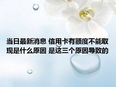导读 信用卡有额度不能取现是什么原因 是这三个原因导致的现在是大家比较关注的,因为目前信用卡有额度不能取现是什么原因 是这三个原因导致...