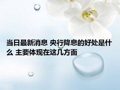 导读 央行降息的好处是什么 主要体现在这几方面现在是大家比较关注的,因为目前央行降息的好处是什么 主要体现在这几方面的热度是相对比较高...