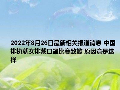 - 2022-08-26今日最新更新内容 中国排协就女排戴口罩比赛致歉 原因竟是这样
