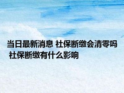 社保断缴会清零吗 社保断缴有什么影响现在是大家比较关注的,因为目前社保断缴会清零吗 社保断缴有什么影响的热度是相对比较高的,那么既然大家对此都比较感兴趣,小S也是特地到网上去查找了一些相关的信息,下面就由小S来把这些信息来分享给大家一起查阅吧。