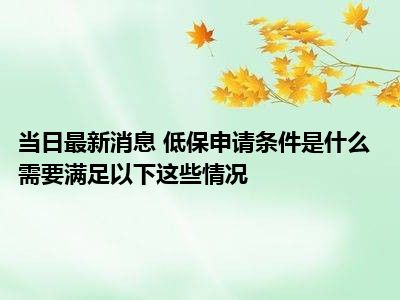 导读 低保申请条件是什么 需要满足以下这些情况现在是大家比较关注的,因为目前低保申请条件是什么 需要满足以下这些情况的热度是相对比较高...